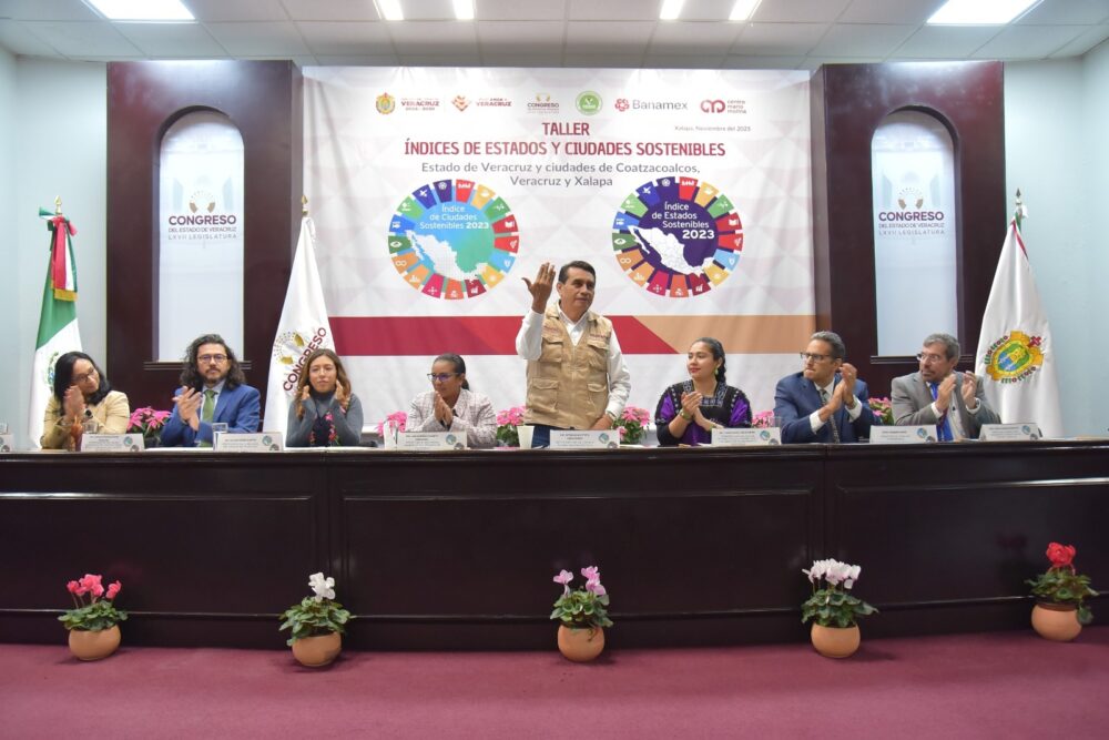 Xalapa, Ver. 12/11/2025.- El Congreso de Veracruz contribuye al fortalecimiento del cuidado del medio ambiente, a la reducción de la desigualdad y al mejoramiento del desarrollo urbano y de las condiciones de vida de los más de ocho millones de habitantes del estado, afirmó la presidenta de la Mesa Directiva de la LXVII Legislatura, Naomi Edith Gómez Santos, al inaugurar el taller Índices de Estados y Ciudades Sostenibles, organizado por el Grupo Legislativo del Partido Verde Ecologista de México (PVEM), en colaboración con el Instituto Mexicano para la Competitividad, A. C. (IMCO), la Fundación NovaGob y el Centro Mario Molina.