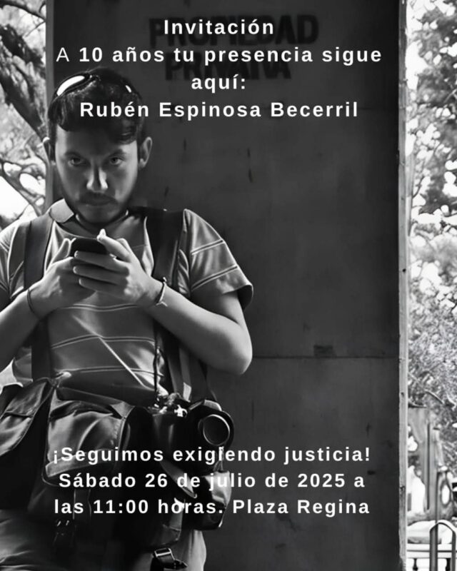 Este 2025, a diez años del crimen, familiares y compañeros del fotoperiodista realizarán un memorial para reiterar la exigencia de justicia, desde la Plaza Lerdo-Regina, como Rubén quería que se llamara el lugar, en honor a su compañera de la revista Proceso, la también asesinada periodista veracruzana Regina Martínez.