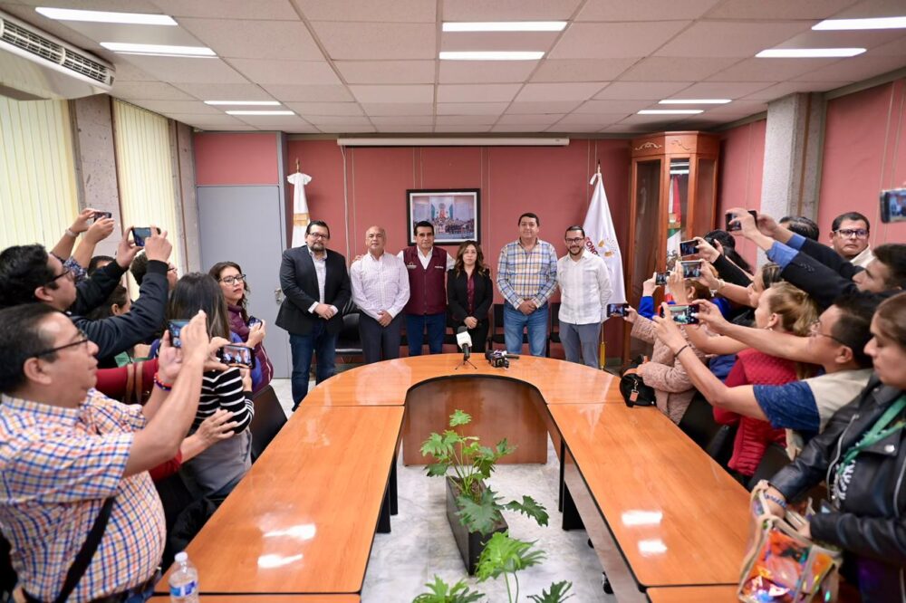 Xalapa, Ver. 15/10/2025.- Los coordinadores de los Grupos Legislativos de Morena, Partido Verde Ecologista de México (PVEM) y Partido Acción Nacional (PAN), la presidenta de la Mesa Directiva, diputada Naomi Edith Gómez Santos, y los diputados del Partido del Trabajo (PT) y de Movimiento Ciudadano (MC), anunciaron en conferencia de prensa el Acuerdo para donar un mes de salario de cada diputada o diputado integrante de la LXVII Legislatura, en un acto de unidad y solidaridad con las personas afectadas por las inundaciones registradas en el norte de Veracruz.
