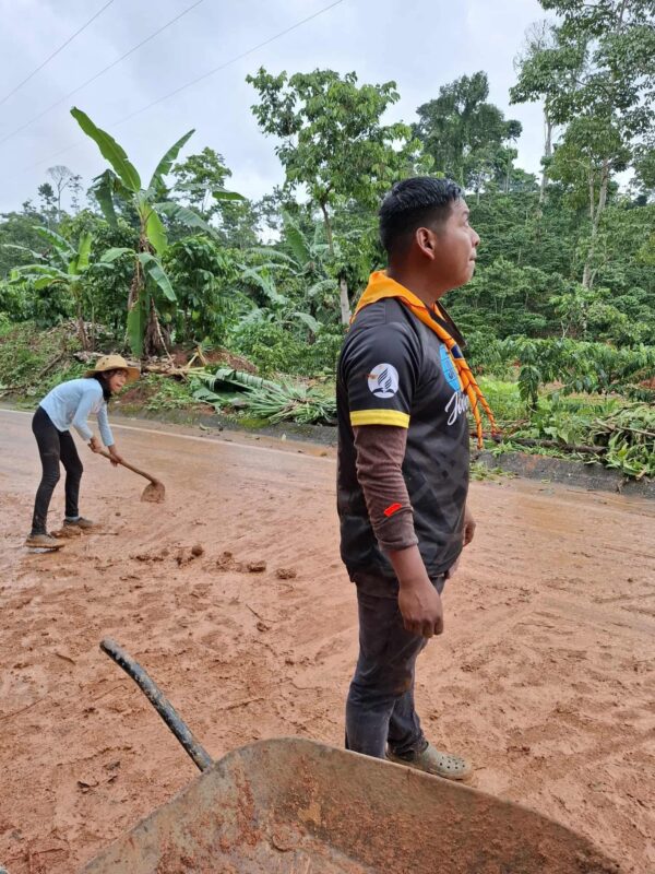 Tras los derrumbes registrados en las comunidades de San José, 26 de Octubre y Para la Patria, los adolescentes y jóvenes adventistas se organizaron para apoyar en las labores de limpieza en las principales vías afectadas. Su intervención fue clave para despejar escombros y restablecer el paso hacia varias comunidades que habían quedado parcialmente incomunicadas.